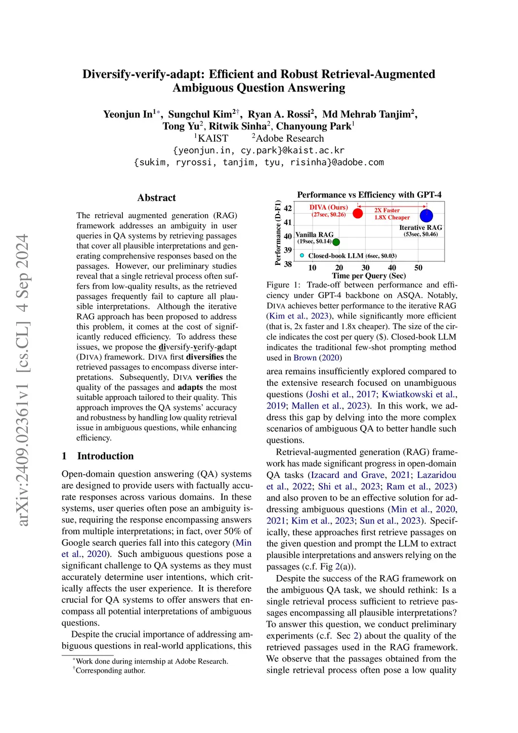 Diversify-verify-adapt: Efficient and Robust Retrieval-Augmented Ambiguous Question Answering