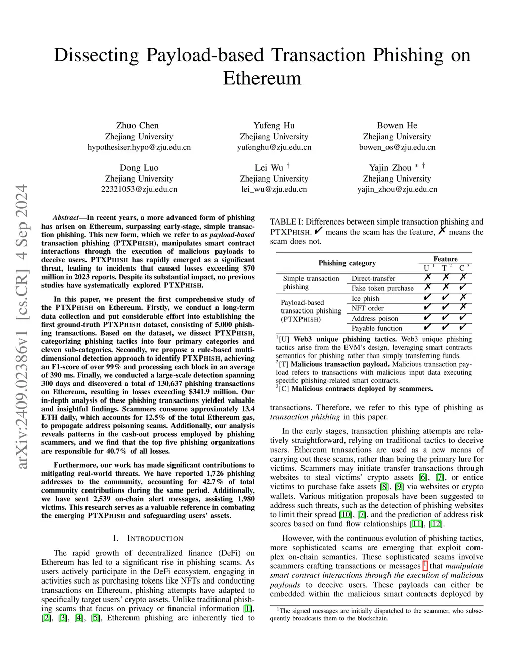 In recent years, a more advanced form of phishing has arisen on Ethereum, surpassing early-stage, simple transaction phishing. This new form, which we refer to as payload-based transaction phishing (PTXPHISH), manipulates smart contract interactions through the execution of malicious payloads to deceive users. PTXPHISH has rapidly emerged as a significant threat, leading to incidents that caused losses exceeding \$70 million in 2023 reports. Despite its substantial impact, no previous studies have systematically explored PTXPHISH In this paper, we present the first comprehensive study of the PTXPHISH on Ethereum. Firstly, we conduct a long-term data collection and put considerable effort into establishing the first ground-truth PTXPHISH dataset, consisting of 5,000 phishing transactions. Based on the dataset, we dissect PTXPHISH, categorizing phishing tactics into four primary categories and eleven sub-categories. Secondly, we propose a rule-based multi-dimensional detection approach to identify PTXPHISH, achieving over 99% accuracy in the ground-truth dataset. Finally, we conducted a large-scale detection spanning 300 days and discovered a total of 130,637 phishing transactions on Ethereum, resulting in losses exceeding $341.9 million. Our in-depth analysis of these phishing transactions yielded valuable and insightful findings. Furthermore, our work has made significant contributions to mitigating real-world threats. We have reported 1,726 phishing addresses to the community, accounting for 42.7% of total community contributions during the same period. Additionally, we have sent 2,539 on-chain alert messages, assisting 1,980 victims. This research serves as a valuable reference in combating the emerging PTXPHISH and safeguarding users' assets.