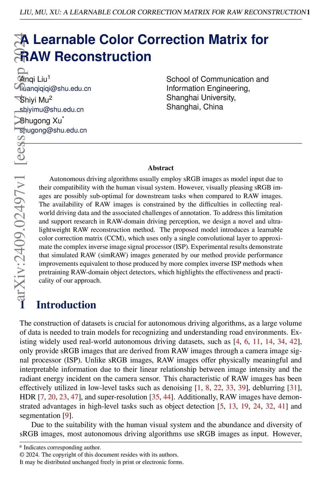 Autonomous driving algorithms usually employ sRGB images as model input due to their compatibility with the human visual system. However, visually pleasing sRGB images are possibly sub-optimal for downstream tasks when compared to RAW images. The availability of RAW images is constrained by the difficulties in collecting real-world driving data and the associated challenges of annotation. To address this limitation and support research in RAW-domain driving perception, we design a novel and ultra-lightweight RAW reconstruction method. The proposed model introduces a learnable color correction matrix (CCM), which uses only a single convolutional layer to approximate the complex inverse image signal processor (ISP). Experimental results demonstrate that simulated RAW (simRAW) images generated by our method provide performance improvements equivalent to those produced by more complex inverse ISP methods when pretraining RAW-domain object detectors, which highlights the effectiveness and practicality of our approach.