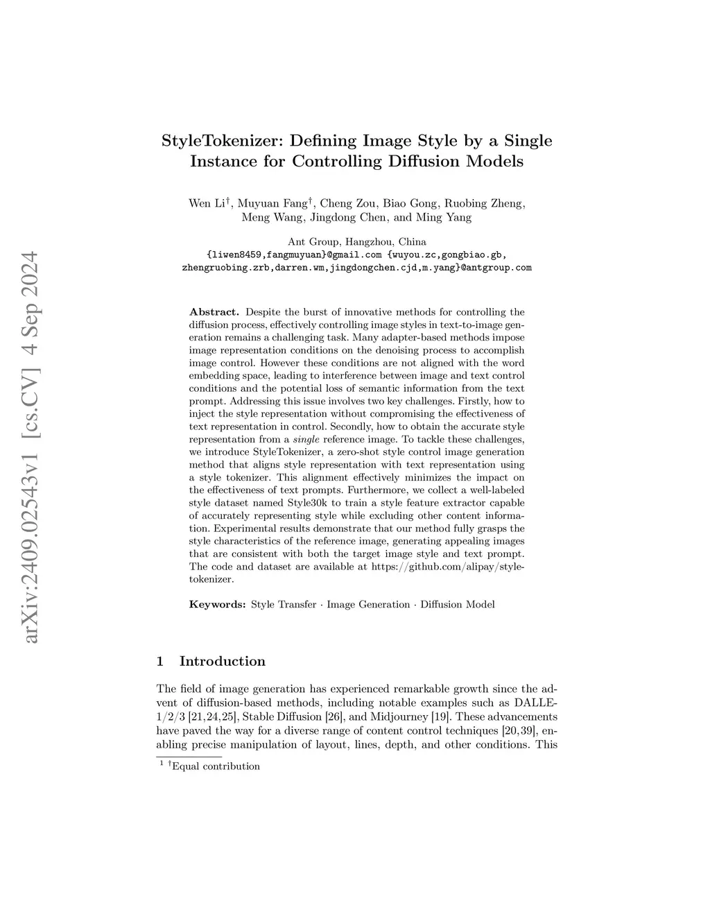 StyleTokenizer: Defining Image Style by a Single Instance for