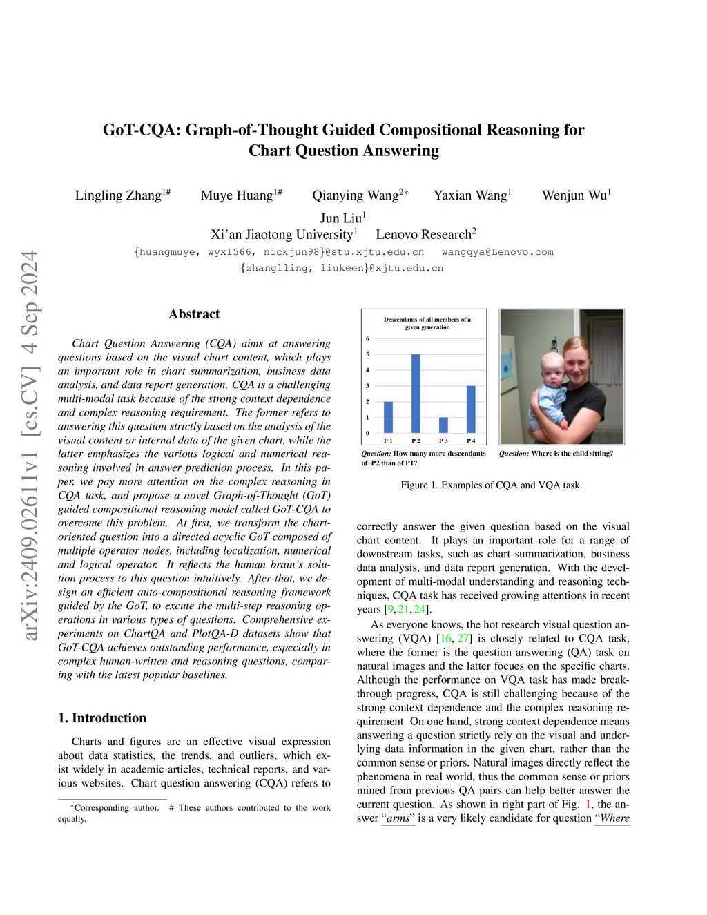 Chart Question Answering (CQA) aims at answering questions based on the visual chart content, which plays an important role in chart sumarization, business data analysis, and data report generation. CQA is a challenging multi-modal task because of the strong context dependence and complex reasoning requirement. The former refers to answering this question strictly based on the analysis of the visual content or internal data of the given chart, while the latter emphasizes the various logical and numerical reasoning involved in answer prediction process. In this paper, we pay more attention on the complex reasoning in CQA task, and propose a novel Graph-of-Thought (GoT) guided compositional reasoning model called GoT-CQA to overcome this problem. At first, we transform the chart-oriented question into a directed acyclic GoT composed of multiple operator nodes, including localization, numerical and logical operator. It intuitively reflects the human brain's solution process to this question. After that, we design an efficient auto-compositional reasoning framework guided by the GoT, to excute the multi-step reasoning operations in various types of questions. Comprehensive experiments on ChartQA and PlotQA-D datasets show that GoT-CQA achieves outstanding performance, especially in complex human-written and reasoning questions, comparing with the latest popular baselines.