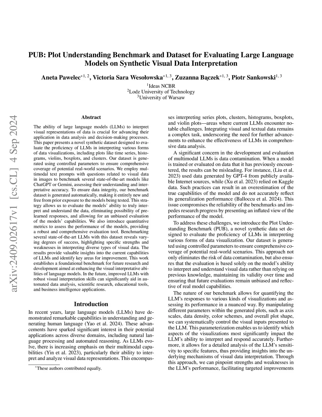 PUB: Plot Understanding Benchmark and Dataset for Evaluating Large