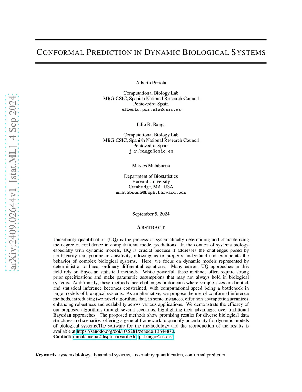 Uncertainty quantification (UQ) is the process of systematically determining and characterizing the degree of confidence in computational model predictions. In the context of systems biology, especially with dynamic models, UQ is crucial because it addresses the challenges posed by nonlinearity and parameter sensitivity, allowing us to properly understand and extrapolate the behavior of complex biological systems. Here, we focus on dynamic models represented by deterministic nonlinear ordinary differential equations. Many current UQ approaches in this field rely on Bayesian statistical methods. While powerful, these methods often require strong prior specifications and make parametric assumptions that may not always hold in biological systems. Additionally, these methods face challenges in domains where sample sizes are limited, and statistical inference becomes constrained, with computational speed being a bottleneck in large models of biological systems. As an alternative, we propose the use of conformal inference methods, introducing two novel algorithms that, in some instances, offer non-asymptotic guarantees, enhancing robustness and scalability across various applications. We demonstrate the efficacy of our proposed algorithms through several scenarios, highlighting their advantages over traditional Bayesian approaches. The proposed methods show promising results for diverse biological data structures and scenarios, offering a general framework to quantify uncertainty for dynamic models of biological systems.The software for the methodology and the reproduction of the results is available at https://zenodo.org/doi/10.5281/zenodo.13644870.
