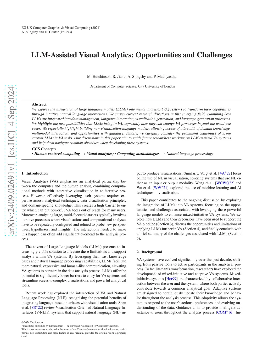 LLM-Assisted Visual Analytics: Opportunities and Challenges