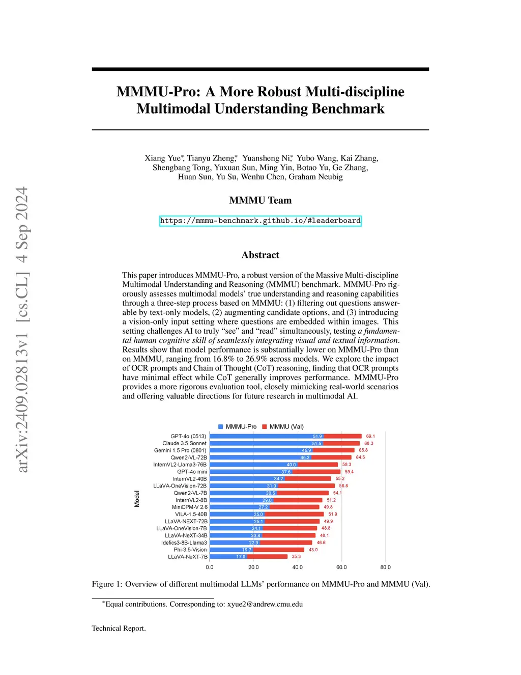 MMMU-Pro: A More Robust Multi-discipline Multimodal Understanding Benchmark