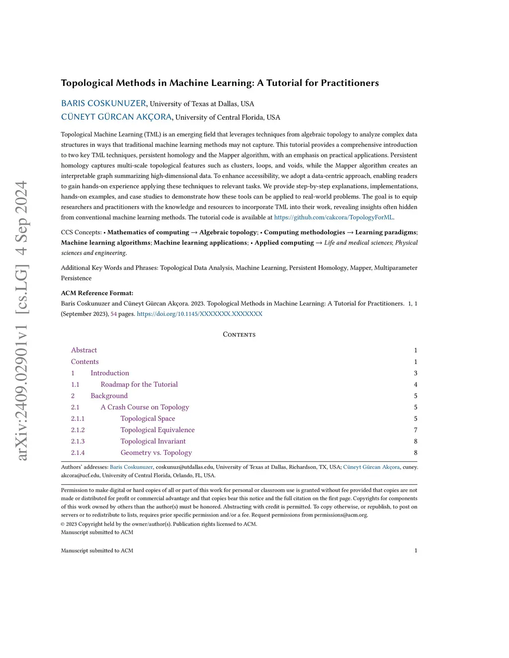 Topological Methods in Machine Learning: A Tutorial for Practitioners