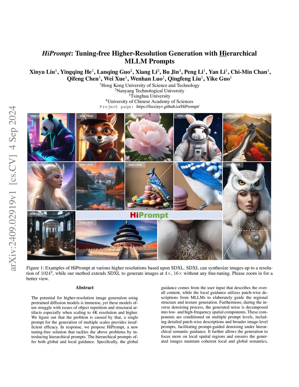 HiPrompt: Tuning-free Higher-Resolution Generation with Hierarchical