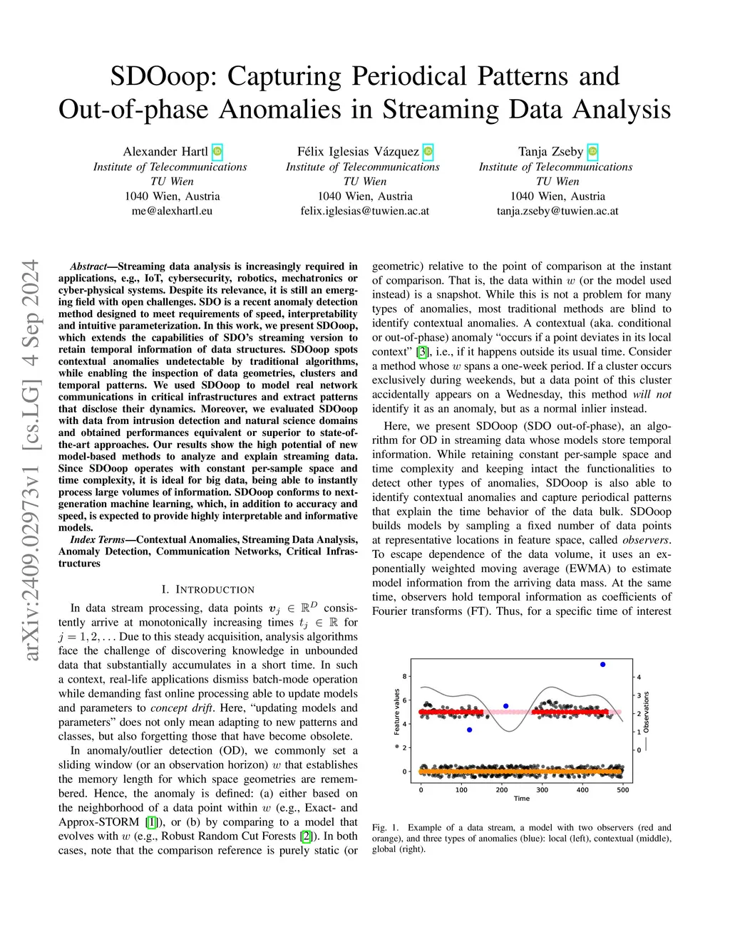Streaming data analysis is increasingly required in applications, e.g., IoT, cybersecurity, robotics, mechatronics or cyber-physical systems. Despite its relevance, it is still an emerging field with open challenges. SDO is a recent anomaly detection method designed to meet requirements of speed, interpretability and intuitive parameterization. In this work, we present SDOoop, which extends the capabilities of SDO's streaming version to retain temporal information of data structures. SDOoop spots contextual anomalies undetectable by traditional algorithms, while enabling the inspection of data geometries, clusters and temporal patterns. We used SDOoop to model real network communications in critical infrastructures and extract patterns that disclose their dynamics. Moreover, we evaluated SDOoop with data from intrusion detection and natural science domains and obtained performances equivalent or superior to state-of-the-art approaches. Our results show the high potential of new model-based methods to analyze and explain streaming data. Since SDOoop operates with constant per-sample space and time complexity, it is ideal for big data, being able to instantly process large volumes of information. SDOoop conforms to next-generation machine learning, which, in addition to accuracy and speed, is expected to provide highly interpretable and informative models.
