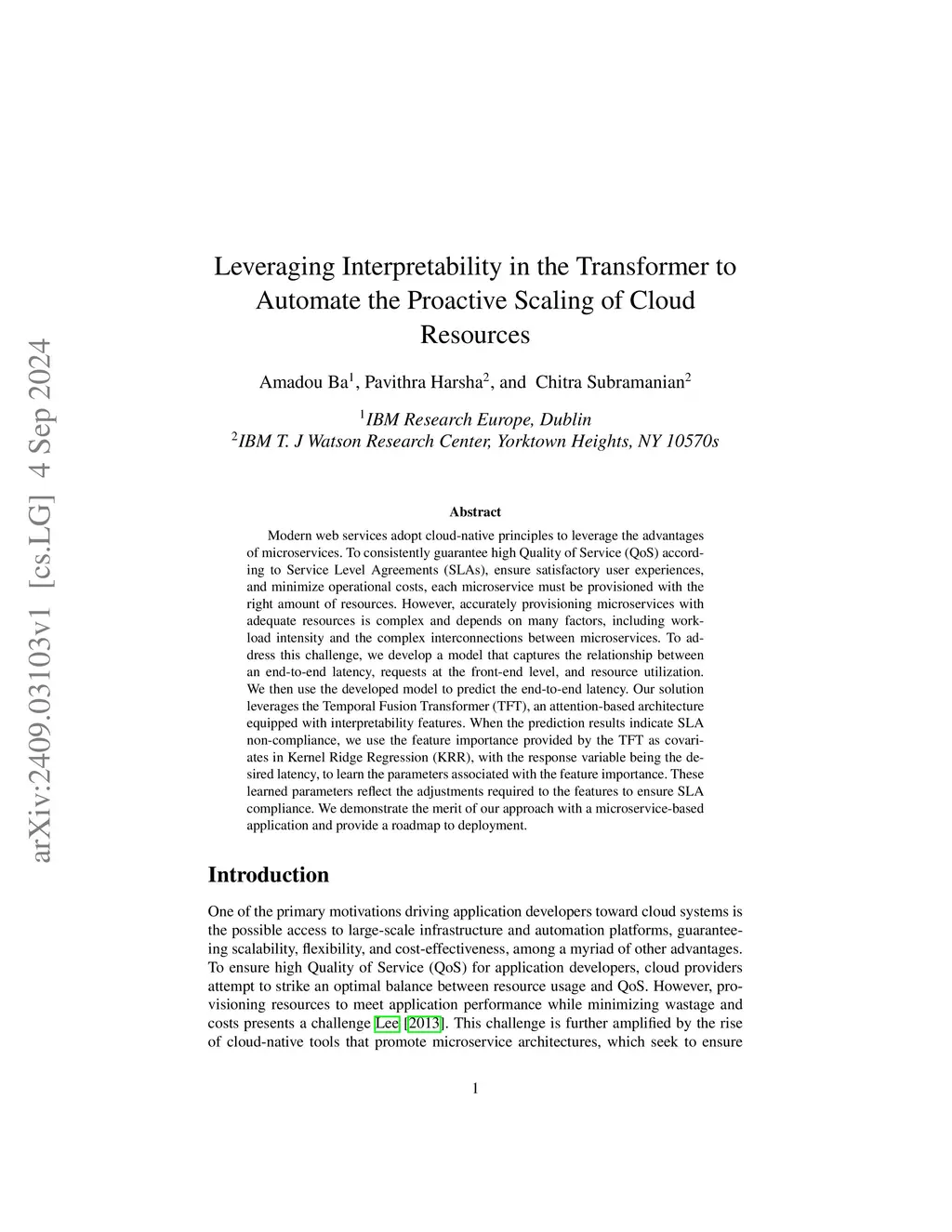 Modern web services adopt cloud-native principles to leverage the advantages of microservices. To consistently guarantee high Quality of Service (QoS) according to Service Level Agreements (SLAs), ensure satisfactory user experiences, and minimize operational costs, each microservice must be provisioned with the right amount of resources. However, accurately provisioning microservices with adequate resources is complex and depends on many factors, including workload intensity and the complex interconnections between microservices. To address this challenge, we develop a model that captures the relationship between an end-to-end latency, requests at the front-end level, and resource utilization. We then use the developed model to predict the end-to-end latency. Our solution leverages the Temporal Fusion Transformer (TFT), an attention-based architecture equipped with interpretability features. When the prediction results indicate SLA non-compliance, we use the feature importance provided by the TFT as covariates in Kernel Ridge Regression (KRR), with the response variable being the desired latency, to learn the parameters associated with the feature importance. These learned parameters reflect the adjustments required to the features to ensure SLA compliance. We demonstrate the merit of our approach with a microservice-based application and provide a roadmap to deployment.