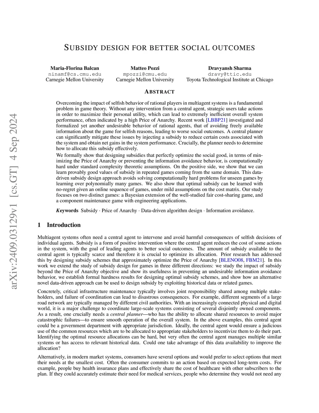 Overcoming the impact of selfish behavior of rational players in multiagent systems is a fundamental problem in game theory. Without any intervention from a central agent, strategic users take actions in order to maximize their personal utility, which can lead to extremely inefficient overall system performance, often indicated by a high Price of Anarchy. Recent work (Lin et al. 2021) investigated and formalized yet another undesirable behavior of rational agents, that of avoiding freely available information about the game for selfish reasons, leading to worse social outcomes. A central planner can significantly mitigate these issues by injecting a subsidy to reduce certain costs associated with the system and obtain net gains in the system performance. Crucially, the planner needs to determine how to allocate this subsidy effectively. We formally show that designing subsidies that perfectly optimize the social good, in terms of minimizing the Price of Anarchy or preventing the information avoidance behavior, is computationally hard under standard complexity theoretic assumptions. On the positive side, we show that we can learn provably good values of subsidy in repeated games coming from the same domain. This data-driven subsidy design approach avoids solving computationally hard problems for unseen games by learning over polynomially many games. We also show that optimal subsidy can be learned with no-regret given an online sequence of games, under mild assumptions on the cost matrix. Our study focuses on two distinct games: a Bayesian extension of the well-studied fair cost-sharing game, and a component maintenance game with engineering applications.