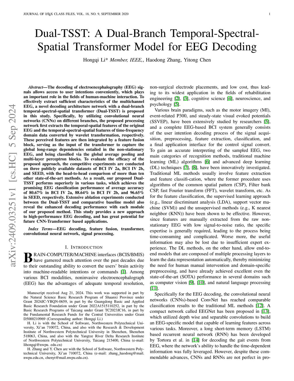 Dual-TSST: A Dual-Branch Temporal-Spectral-Spatial Transformer Model for