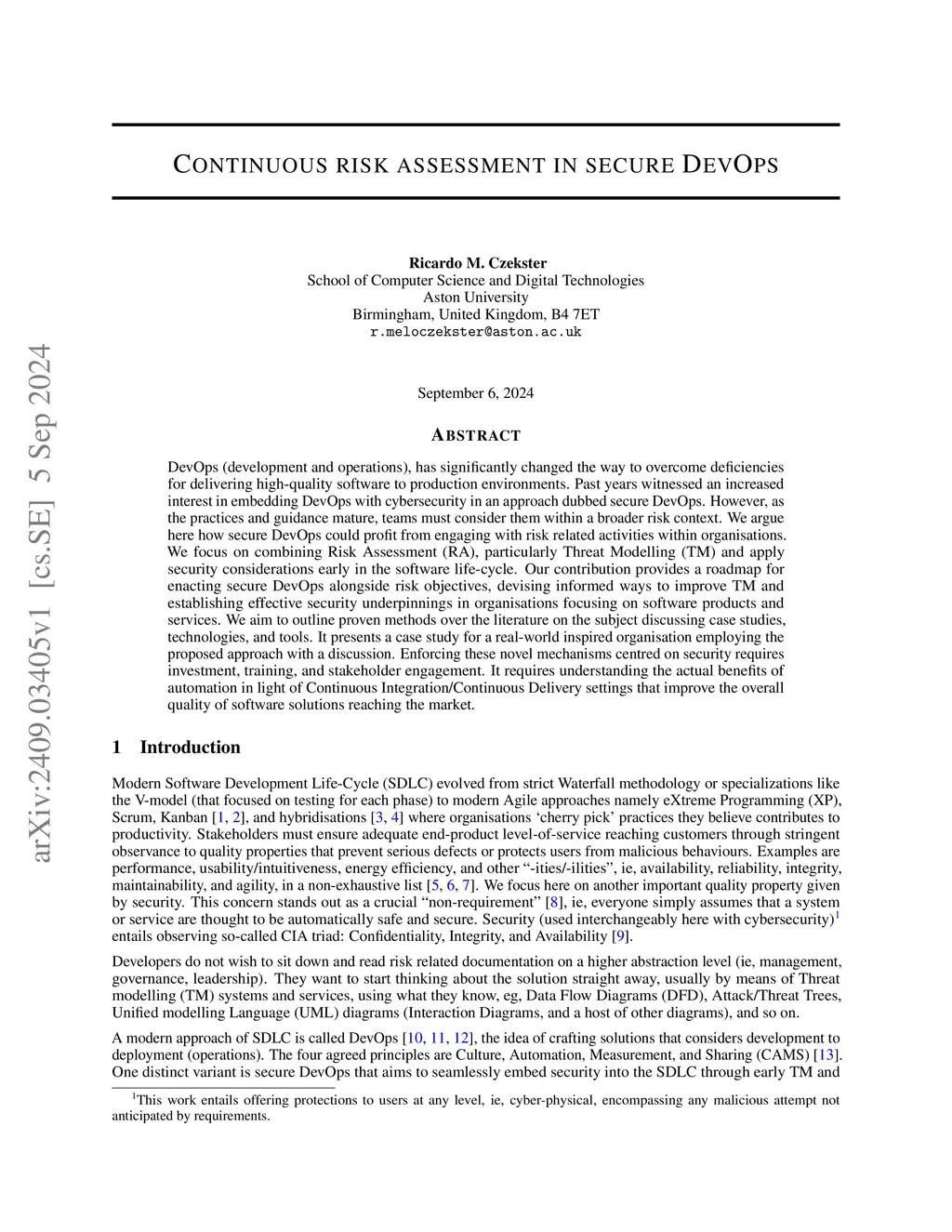 Continuous risk assessment in secure DevOps