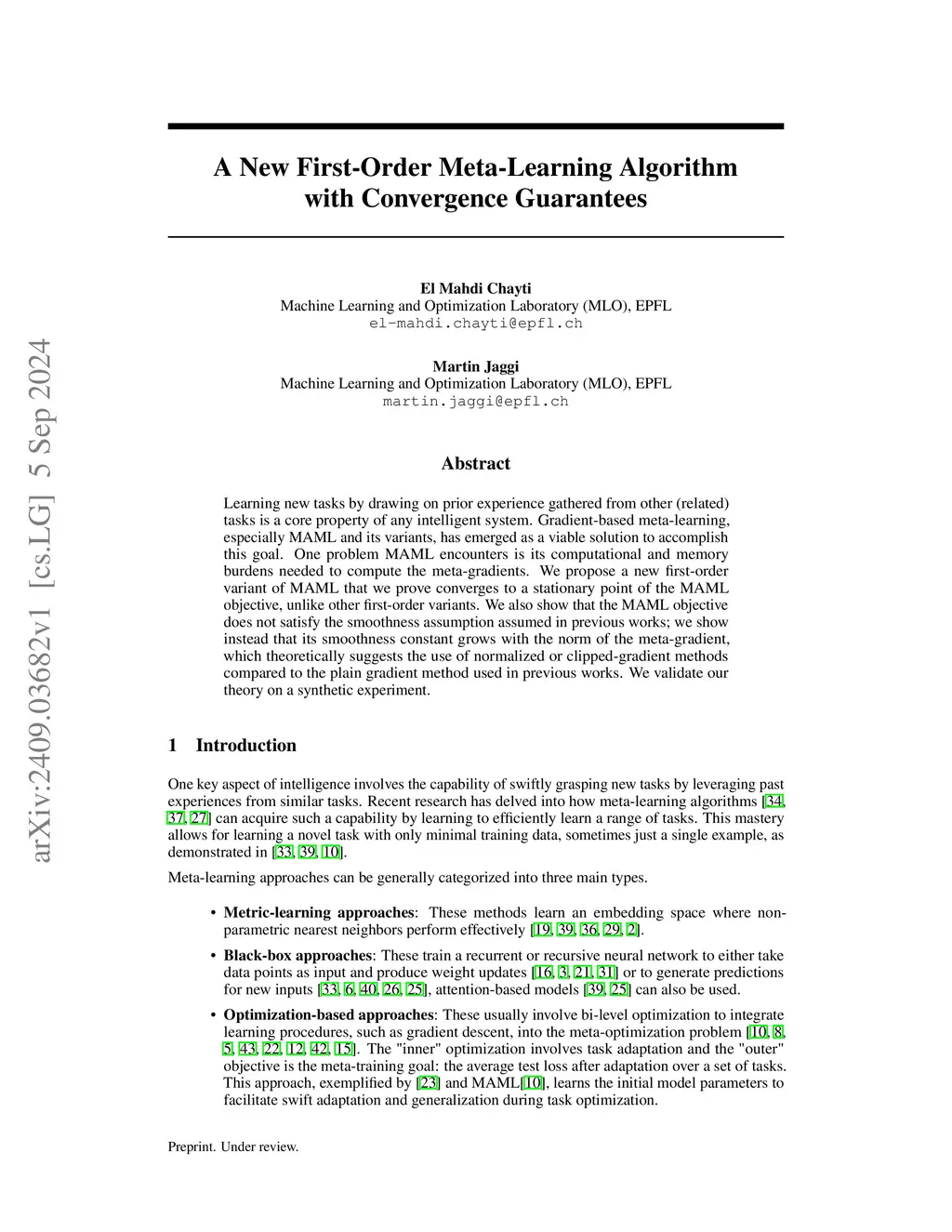 A New First-Order Meta-Learning Algorithm with Convergence Guarantees