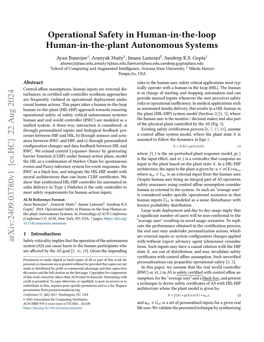 Operational Safety in Human-in-the-loop Human-in-the-plant Autonomous