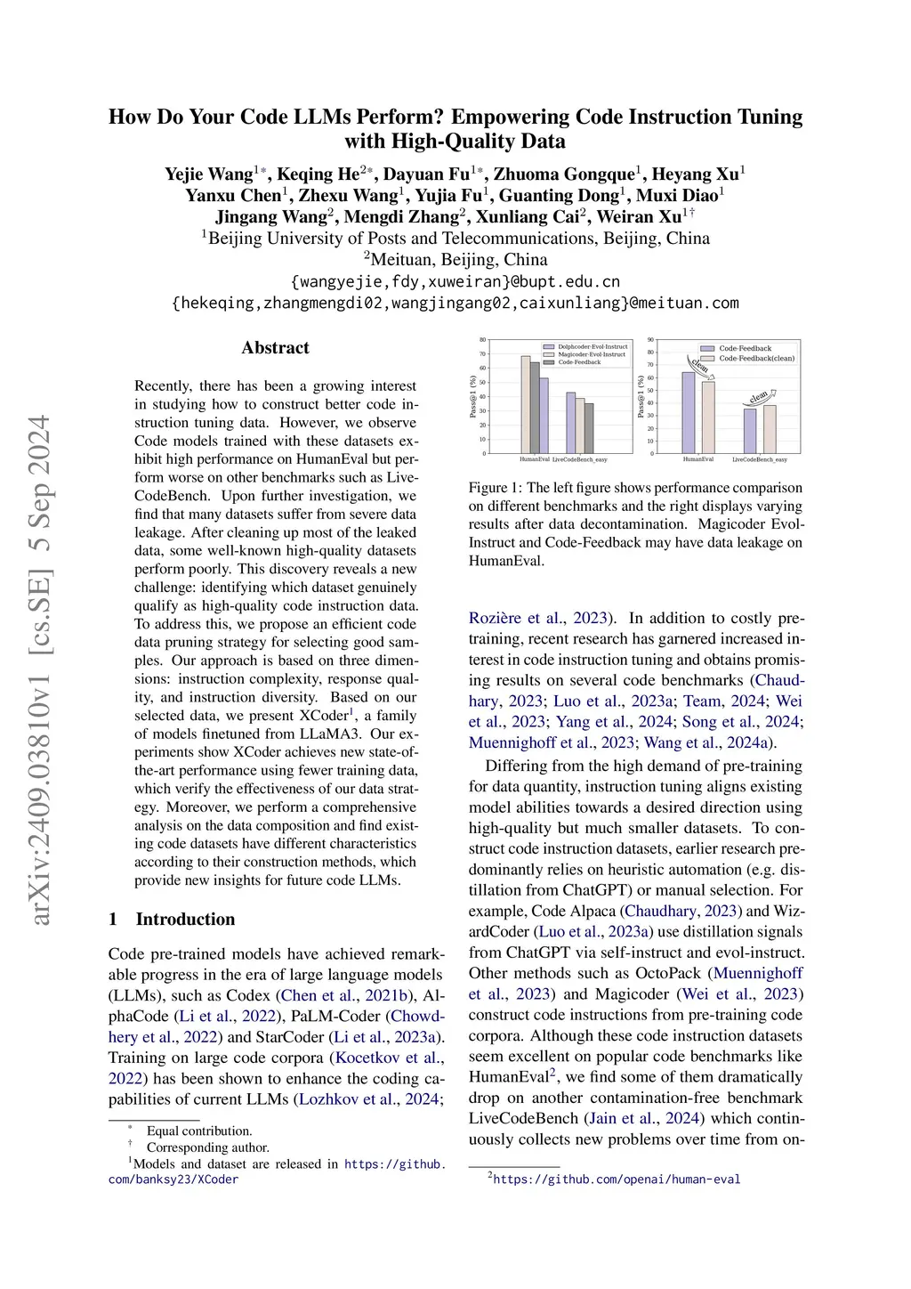 Recently, there has been a growing interest in studying how to construct better code instruction tuning data. However, we observe Code models trained with these datasets exhibit high performance on HumanEval but perform worse on other benchmarks such as LiveCodeBench. Upon further investigation, we find that many datasets suffer from severe data leakage. After cleaning up most of the leaked data, some well-known high-quality datasets perform poorly. This discovery reveals a new challenge: identifying which dataset genuinely qualify as high-quality code instruction data. To address this, we propose an efficient code data pruning strategy for selecting good samples. Our approach is based on three dimensions: instruction complexity, response quality, and instruction diversity. Based on our selected data, we present XCoder, a family of models finetuned from LLaMA3. Our experiments show XCoder achieves new state-of-the-art performance using fewer training data, which verify the effectiveness of our data strategy. Moreover, we perform a comprehensive analysis on the data composition and find existing code datasets have different characteristics according to their construction methods, which provide new insights for future code LLMs. Our models and dataset are released in https://github.com/banksy23/XCoder