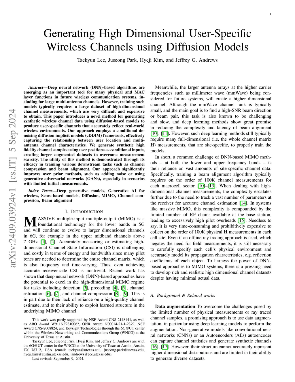 Generating High Dimensional User-Specific Wireless Channels using Diffusion Models