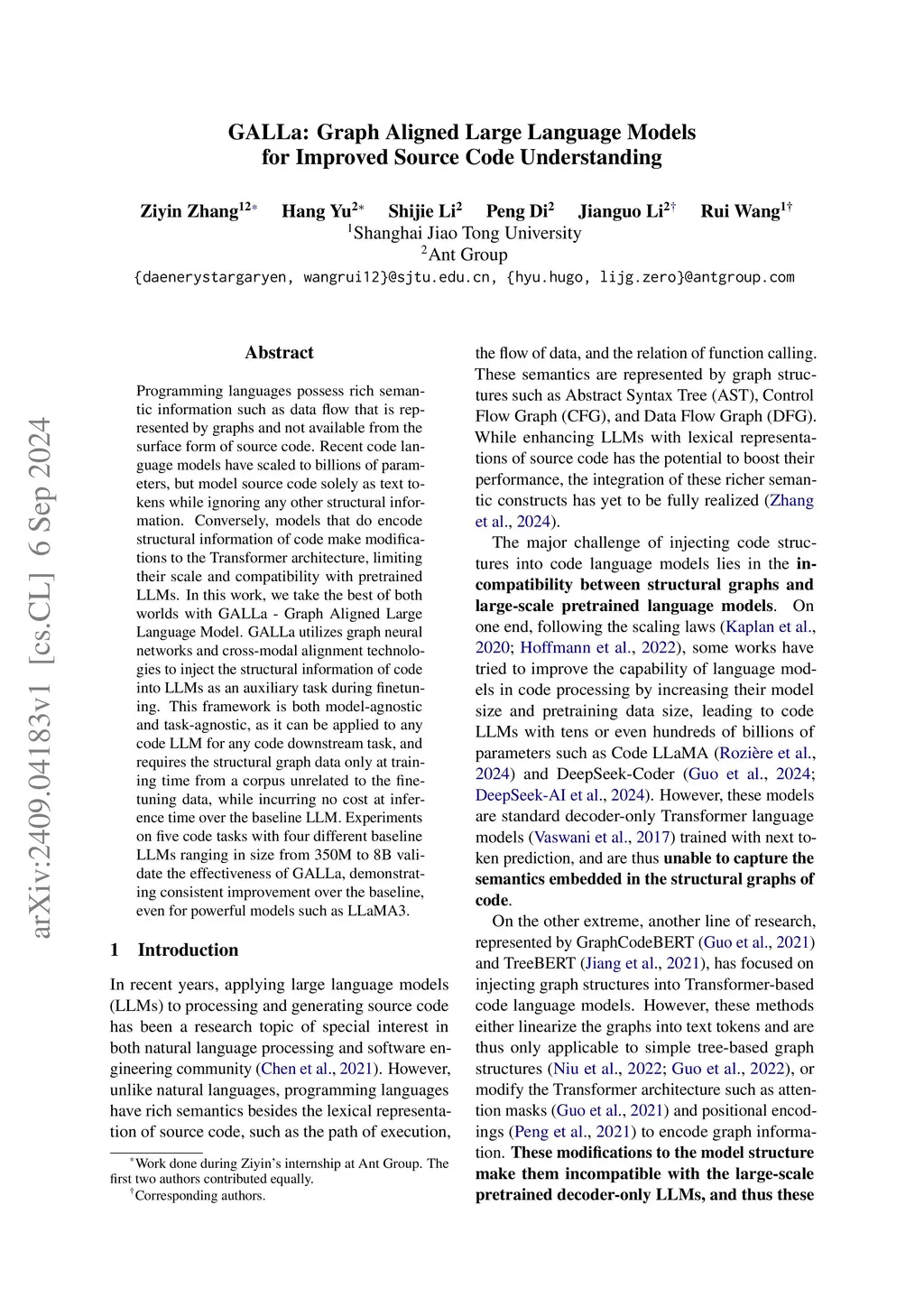 GALLa: Graph Aligned Large Language Models for Improved Source Code Understanding