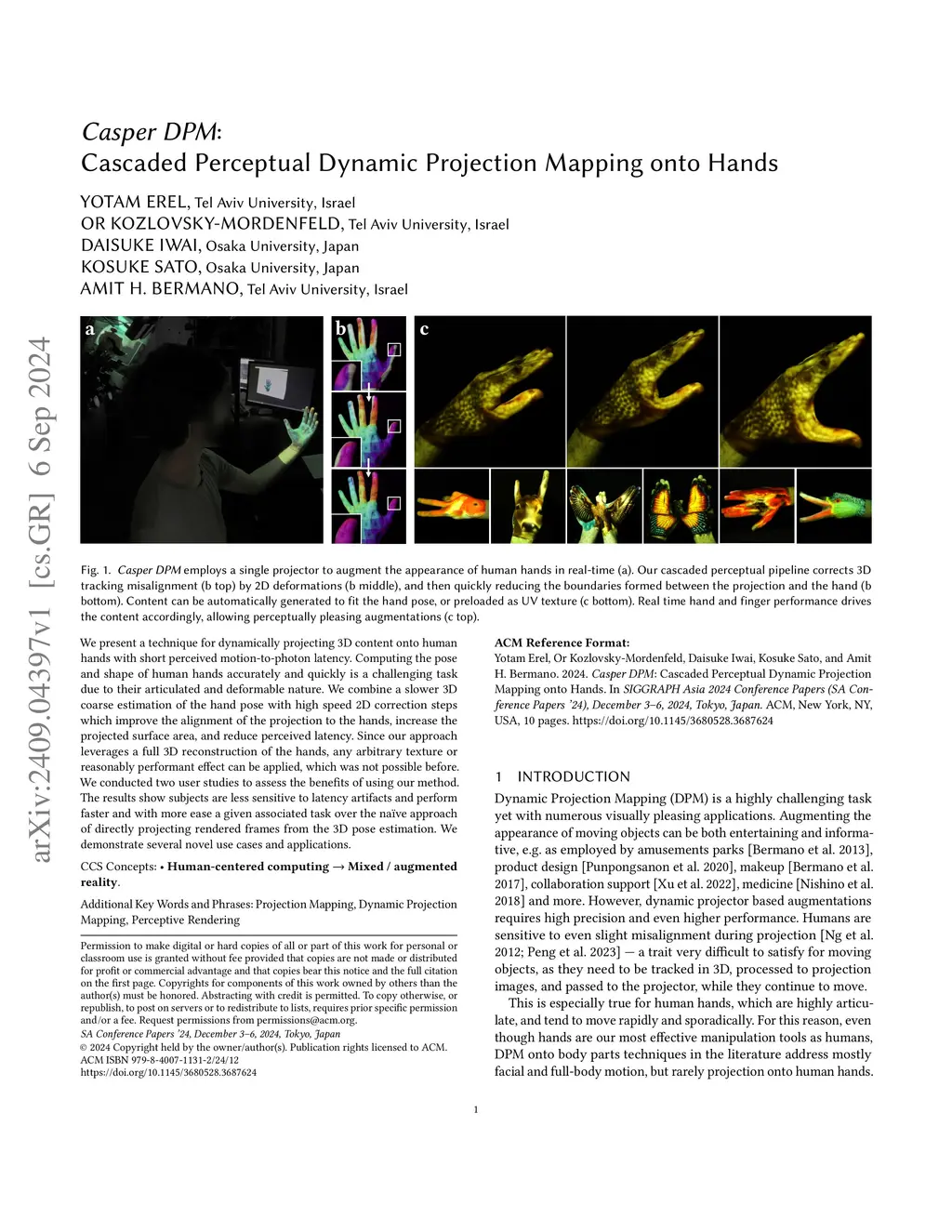 Casper DPM: Cascaded Perceptual Dynamic Projection Mapping onto Hands