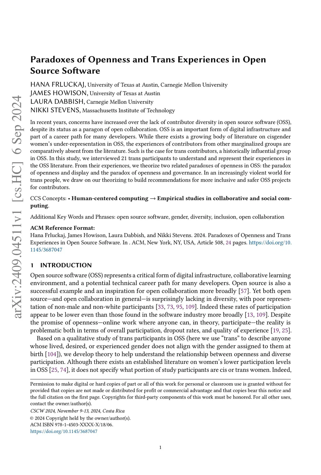 Paradoxes of Openness and Trans Experiences in Open Source Software