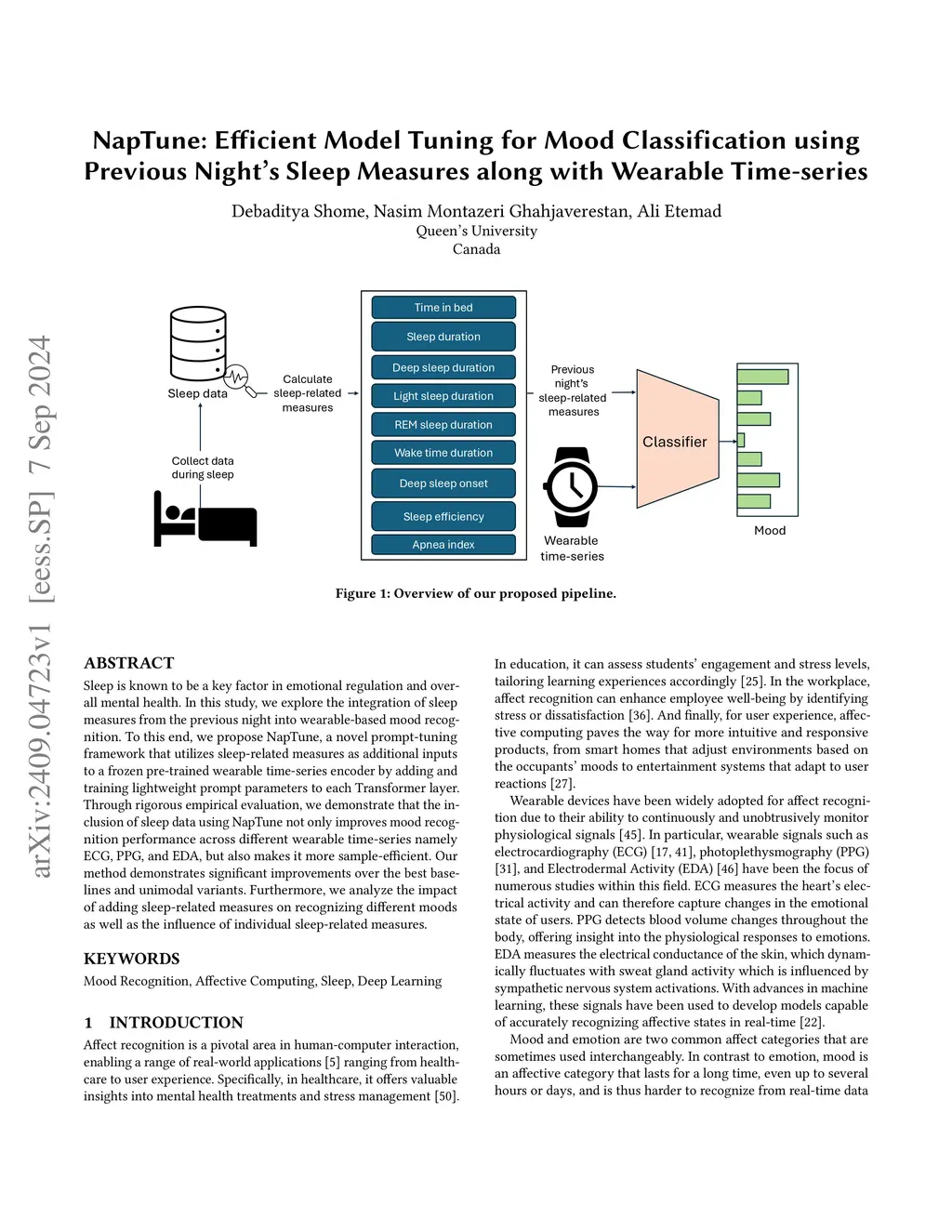 NapTune: Efficient Model Tuning for Mood Classification using Previous