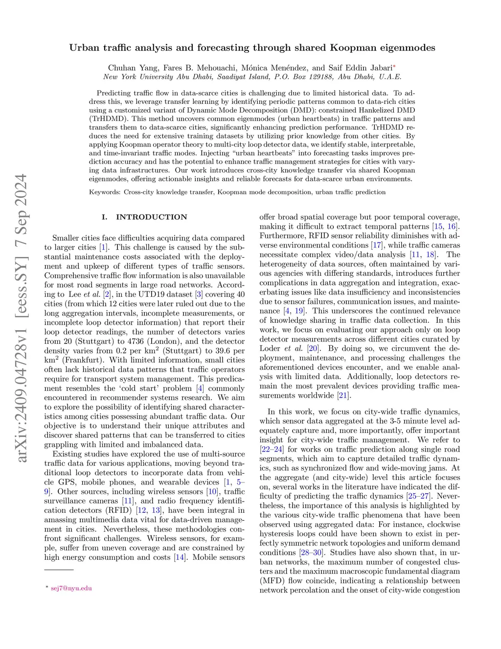 Urban traffic analysis and forecasting through shared Koopman eigenmodes