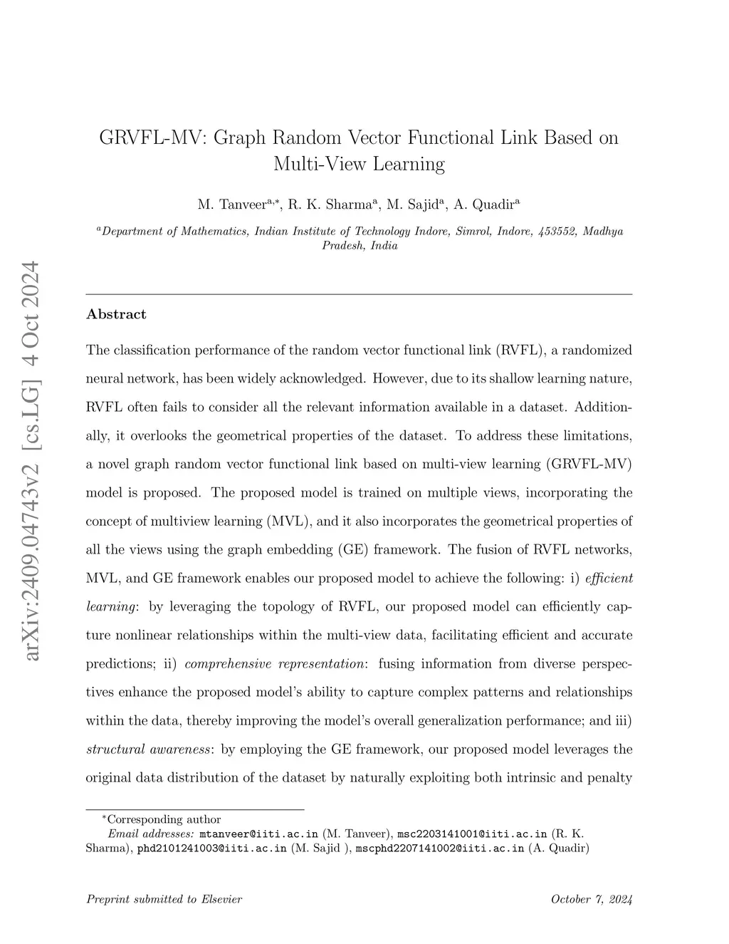 GRVFL-MV: Graph Random Vector Functional Link Based on Multi-View Learning