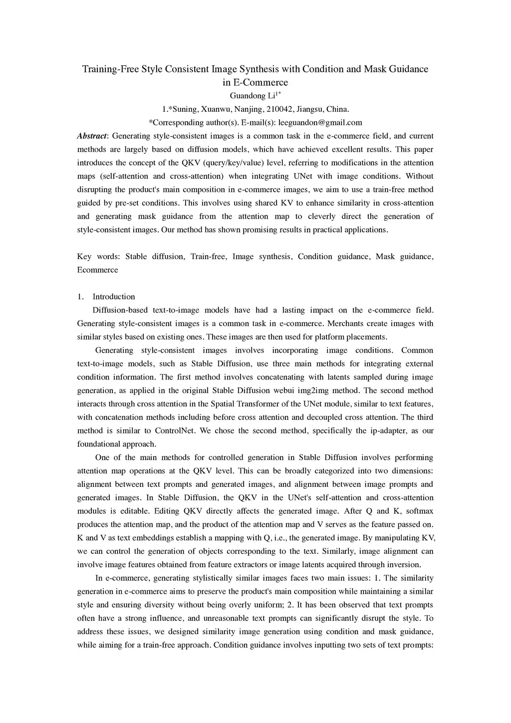 Generating style-consistent images is a common task in the e-commerce field, and current methods are largely based on diffusion models, which have achieved excellent results. This paper introduces the concept of the QKV (query/key/value) level, referring to modifications in the attention maps (self-attention and cross-attention) when integrating UNet with image conditions. Without disrupting the product's main composition in e-commerce images, we aim to use a train-free method guided by pre-set conditions. This involves using shared KV to enhance similarity in cross-attention and generating mask guidance from the attention map to cleverly direct the generation of style-consistent images. Our method has shown promising results in practical applications.