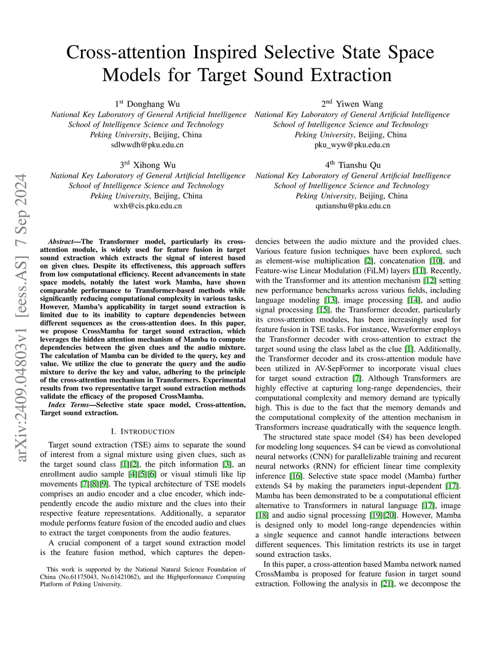 Cross-attention Inspired Selective State Space Models for Target Sound Extraction