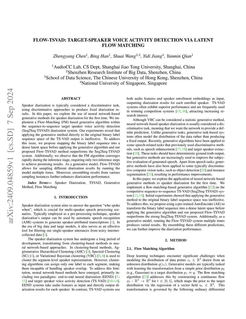 Speaker diarization is typically considered a discriminative task, using discriminative approaches to produce fixed diarization results. In this paper, we explore the use of neural network-based generative methods for speaker diarization for the first time. We implement a Flow-Matching (FM) based generative algorithm within the sequence-to-sequence target speaker voice activity detection (Seq2Seq-TSVAD) diarization system. Our experiments reveal that applying the generative method directly to the original binary label sequence space of the TS-VAD output is ineffective. To address this issue, we propose mapping the binary label sequence into a dense latent space before applying the generative algorithm and our proposed Flow-TSVAD method outperforms the Seq2Seq-TSVAD system. Additionally, we observe that the FM algorithm converges rapidly during the inference stage, requiring only two inference steps to achieve promising results. As a generative model, Flow-TSVAD allows for sampling different diarization results by running the model multiple times. Moreover, ensembling results from various sampling instances further enhances diarization performance.