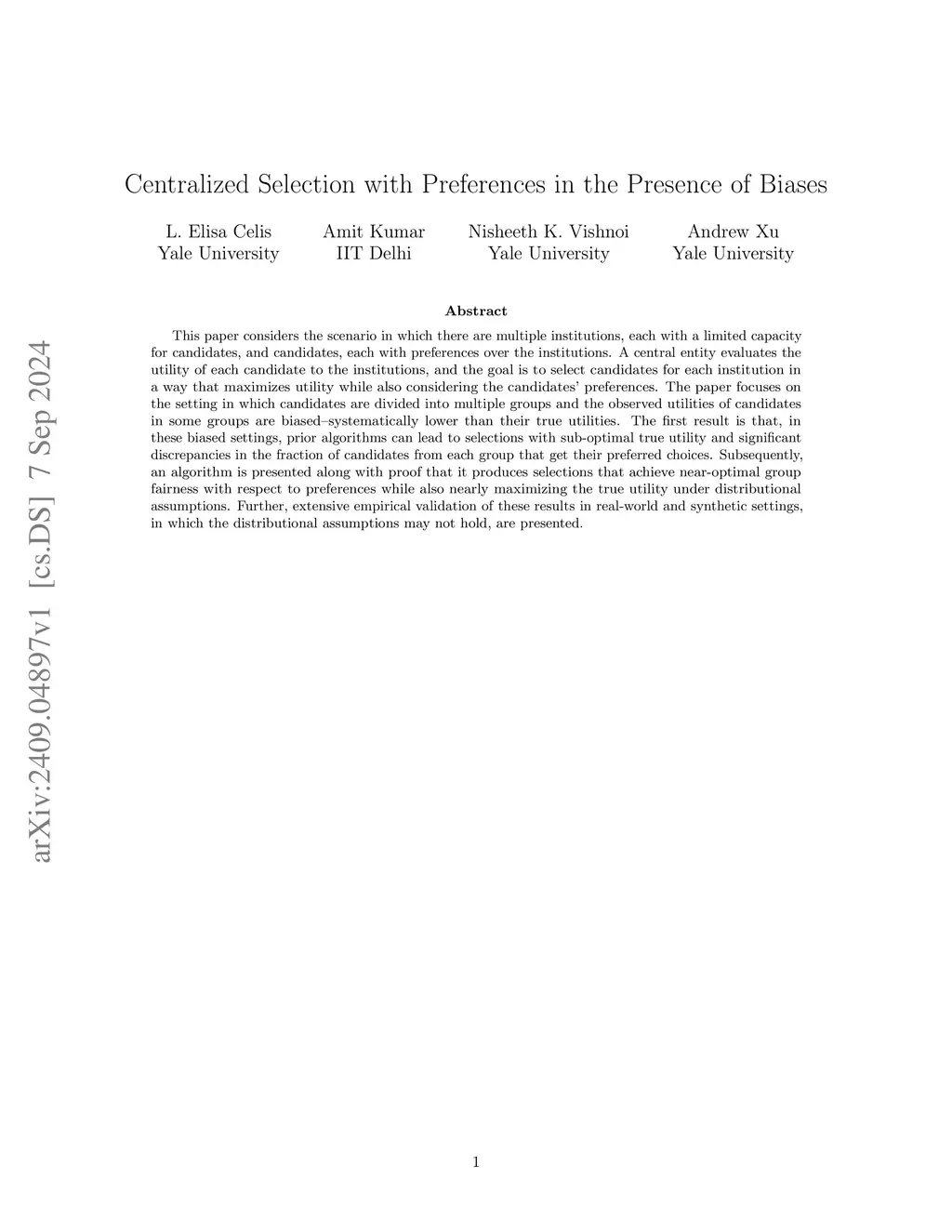 This paper considers the scenario in which there are multiple institutions, each with a limited capacity for candidates, and candidates, each with preferences over the institutions. A central entity evaluates the utility of each candidate to the institutions, and the goal is to select candidates for each institution in a way that maximizes utility while also considering the candidates' preferences. The paper focuses on the setting in which candidates are divided into multiple groups and the observed utilities of candidates in some groups are biased--systematically lower than their true utilities. The first result is that, in these biased settings, prior algorithms can lead to selections with sub-optimal true utility and significant discrepancies in the fraction of candidates from each group that get their preferred choices. Subsequently, an algorithm is presented along with proof that it produces selections that achieve near-optimal group fairness with respect to preferences while also nearly maximizing the true utility under distributional assumptions. Further, extensive empirical validation of these results in real-world and synthetic settings, in which the distributional assumptions may not hold, are presented.