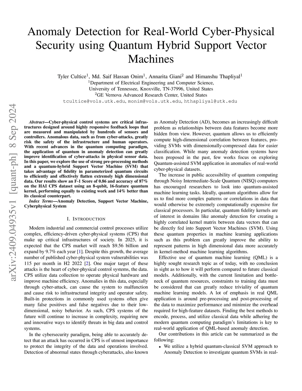 Anomaly Detection for Real-World Cyber-Physical Security using Quantum