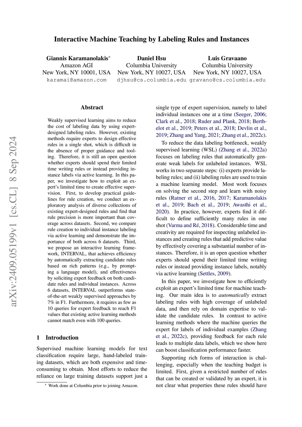 Weakly supervised learning aims to reduce the cost of labeling data by using expert-designed labeling rules. However, existing methods require experts to design effective rules in a single shot, which is difficult in the absence of proper guidance and tooling. Therefore, it is still an open question whether experts should spend their limited time writing rules or instead providing instance labels via active learning. In this paper, we investigate how to exploit an expert's limited time to create effective supervision. First, to develop practical guidelines for rule creation, we conduct an exploratory analysis of diverse collections of existing expert-designed rules and find that rule precision is more important than coverage across datasets. Second, we compare rule creation to individual instance labeling via active learning and demonstrate the importance of both across 6 datasets. Third, we propose an interactive learning framework, INTERVAL, that achieves efficiency by automatically extracting candidate rules based on rich patterns (e.g., by prompting a language model), and effectiveness by soliciting expert feedback on both candidate rules and individual instances. Across 6 datasets, INTERVAL outperforms state-of-the-art weakly supervised approaches by 7% in F1. Furthermore, it requires as few as 10 queries for expert feedback to reach F1 values that existing active learning methods cannot match even with 100 queries.