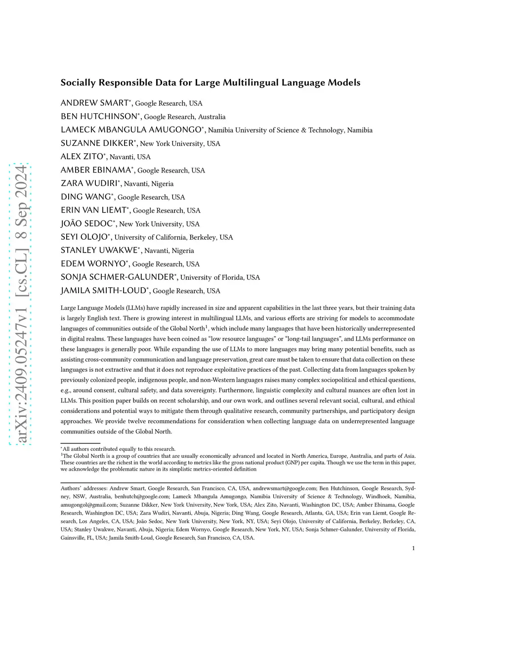 Large Language Models (LLMs) have rapidly increased in size and apparent capabilities in the last three years, but their training data is largely English text. There is growing interest in multilingual LLMs, and various efforts are striving for models to accommodate languages of communities outside of the Global North, which include many languages that have been historically underrepresented in digital realms. These languages have been coined as "low resource languages" or "long-tail languages", and LLMs performance on these languages is generally poor. While expanding the use of LLMs to more languages may bring many potential benefits, such as assisting cross-community communication and language preservation, great care must be taken to ensure that data collection on these languages is not extractive and that it does not reproduce exploitative practices of the past. Collecting data from languages spoken by previously colonized people, indigenous people, and non-Western languages raises many complex sociopolitical and ethical questions, e.g., around consent, cultural safety, and data sovereignty. Furthermore, linguistic complexity and cultural nuances are often lost in LLMs. This position paper builds on recent scholarship, and our own work, and outlines several relevant social, cultural, and ethical considerations and potential ways to mitigate them through qualitative research, community partnerships, and participatory design approaches. We provide twelve recommendations for consideration when collecting language data on underrepresented language communities outside of the Global North.