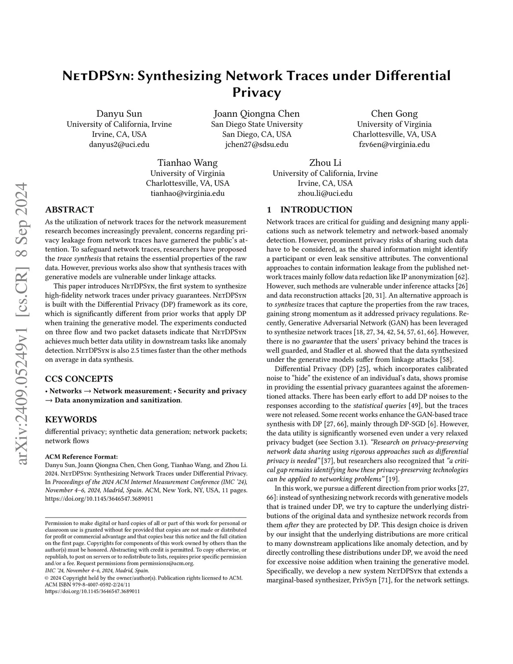 NetDPSyn: Synthesizing Network Traces under Differential Privacy