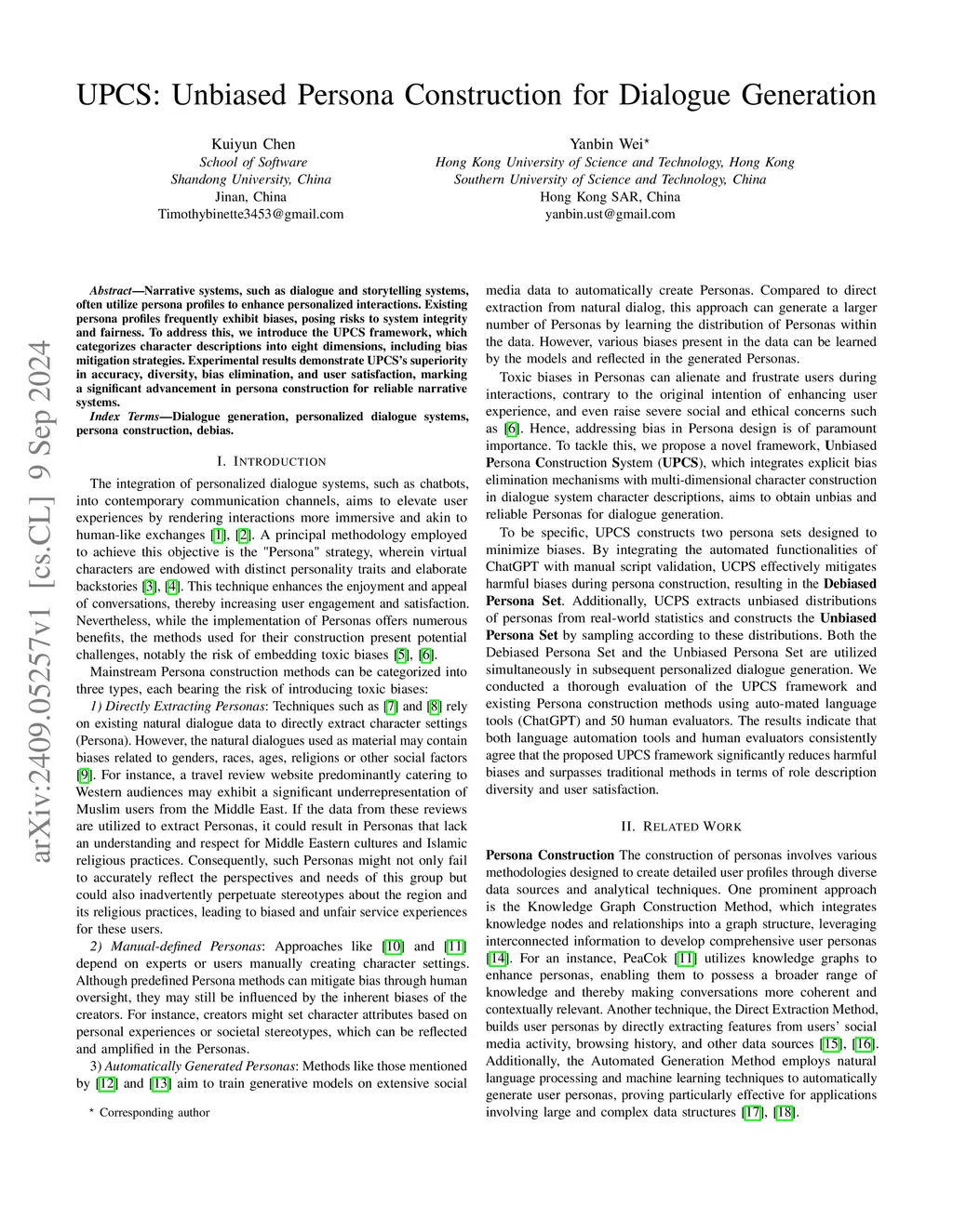 UPCS: Unbiased Persona Construction for Dialogue Generation