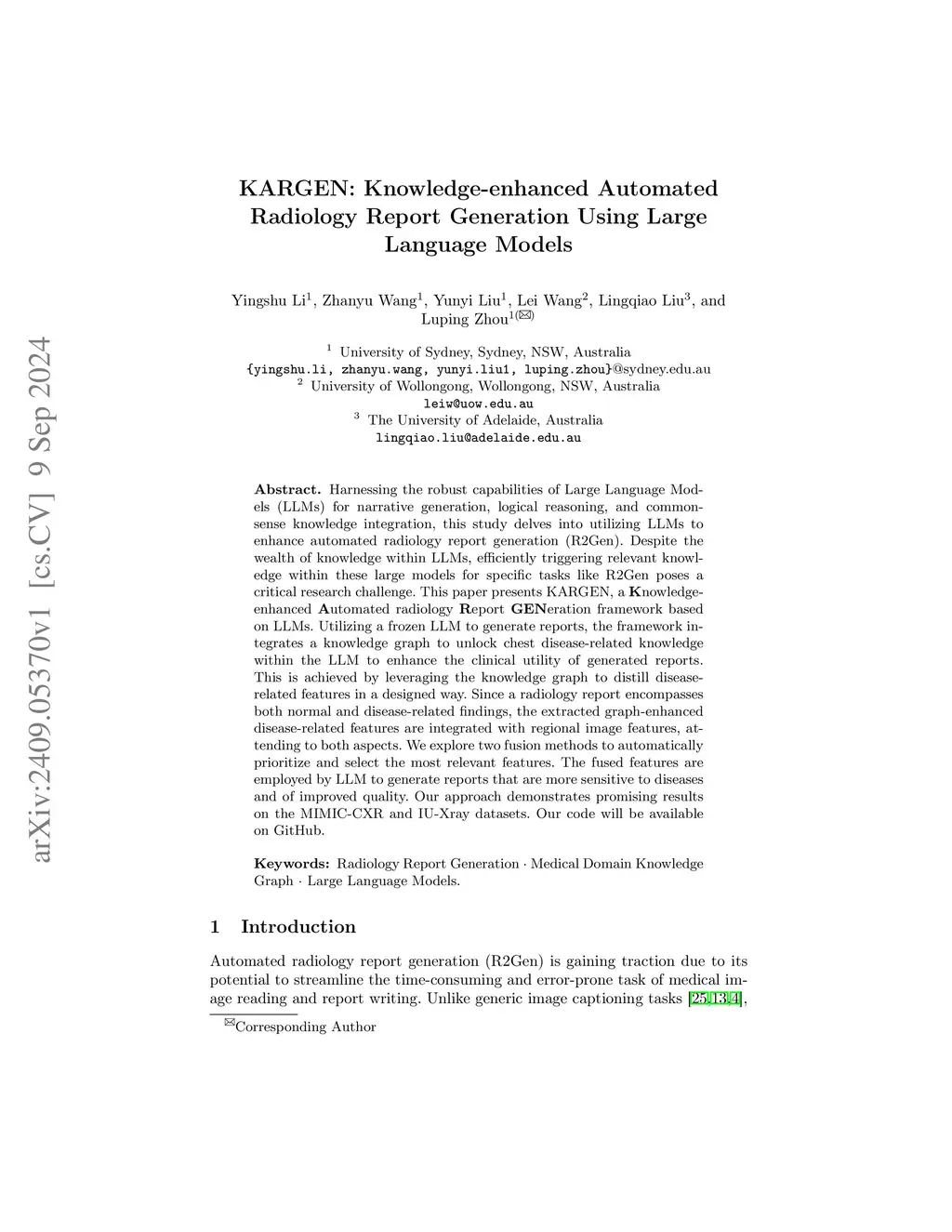 KARGEN: Knowledge-enhanced Automated Radiology Report Generation Using