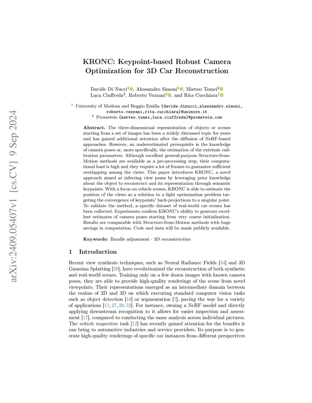 KRONC: Keypoint-based Robust Camera Optimization for 3D Car