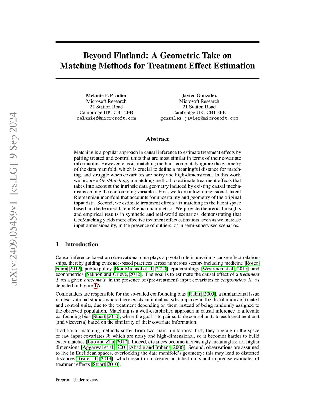 Beyond Flatland: A Geometric Take on Matching Methods for Treatment Effect Estimation
