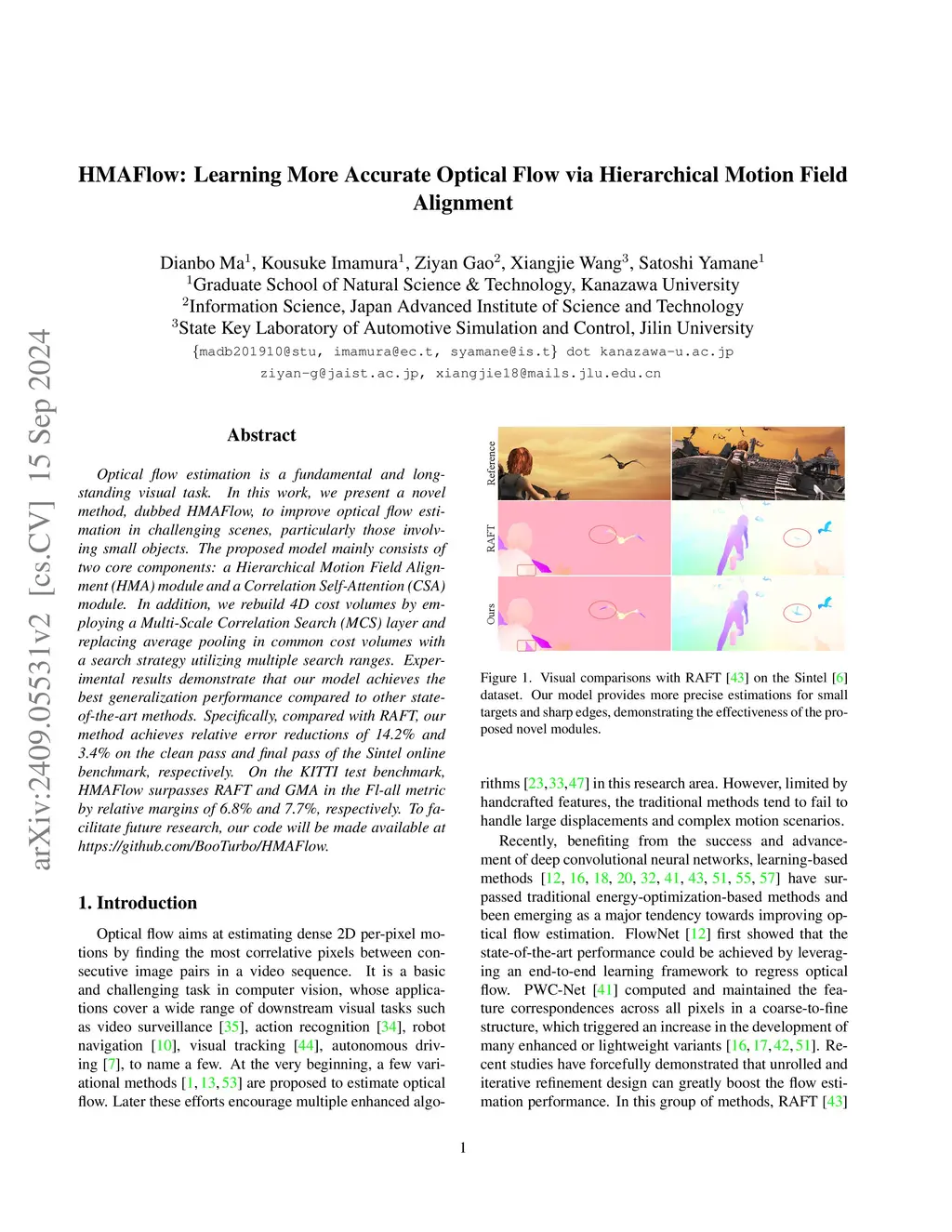 HMAFlow: Learning More Accurate Optical Flow via Hierarchical Motion