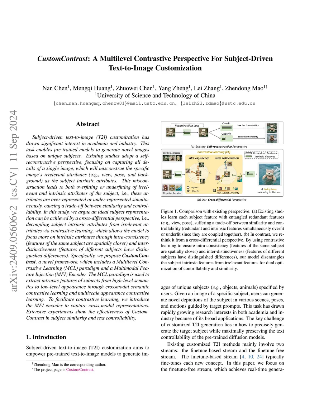 CustomContrast: A Multilevel Contrastive Perspective For Subject-Driven Text-to-Image Customization