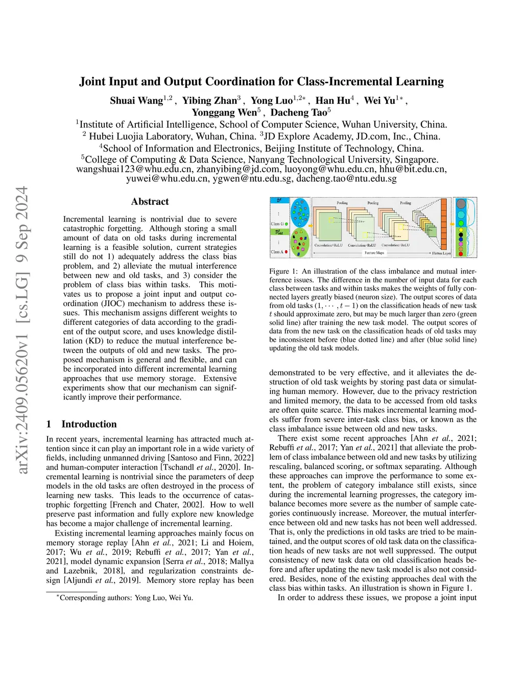 Incremental learning is nontrivial due to severe catastrophic forgetting. Although storing a small amount of data on old tasks during incremental learning is a feasible solution, current strategies still do not 1) adequately address the class bias problem, and 2) alleviate the mutual interference between new and old tasks, and 3) consider the problem of class bias within tasks. This motivates us to propose a joint input and output coordination (JIOC) mechanism to address these issues. This mechanism assigns different weights to different categories of data according to the gradient of the output score, and uses knowledge distillation (KD) to reduce the mutual interference between the outputs of old and new tasks. The proposed mechanism is general and flexible, and can be incorporated into different incremental learning approaches that use memory storage. Extensive experiments show that our mechanism can significantly improve their performance.