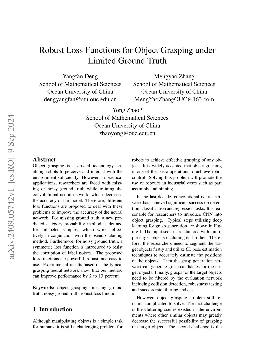 Object grasping is a crucial technology enabling robots to perceive and interact with the environment sufficiently. However, in practical applications, researchers are faced with missing or noisy ground truth while training the convolutional neural network, which decreases the accuracy of the model. Therefore, different loss functions are proposed to deal with these problems to improve the accuracy of the neural network. For missing ground truth, a new predicted category probability method is defined for unlabeled samples, which works effectively in conjunction with the pseudo-labeling method. Furthermore, for noisy ground truth, a symmetric loss function is introduced to resist the corruption of label noises. The proposed loss functions are powerful, robust, and easy to use. Experimental results based on the typical grasping neural network show that our method can improve performance by 2 to 13 percent.
