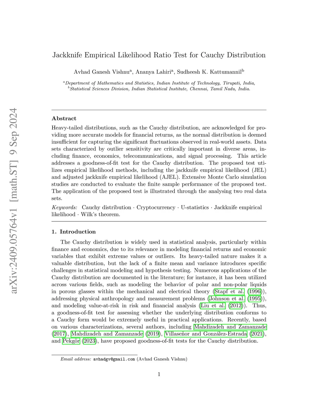 Heavy-tailed distributions, such as the Cauchy distribution, are acknowledged for providing more accurate models for financial returns, as the normal distribution is deemed insufficient for capturing the significant fluctuations observed in real-world assets. Data sets characterized by outlier sensitivity are critically important in diverse areas, including finance, economics, telecommunications, and signal processing. This article addresses a goodness-of-fit test for the Cauchy distribution. The proposed test utilizes empirical likelihood methods, including the jackknife empirical likelihood (JEL) and adjusted jackknife empirical likelihood (AJEL). Extensive Monte Carlo simulation studies are conducted to evaluate the finite sample performance of the proposed test. The application of the proposed test is illustrated through the analysing two real data sets.