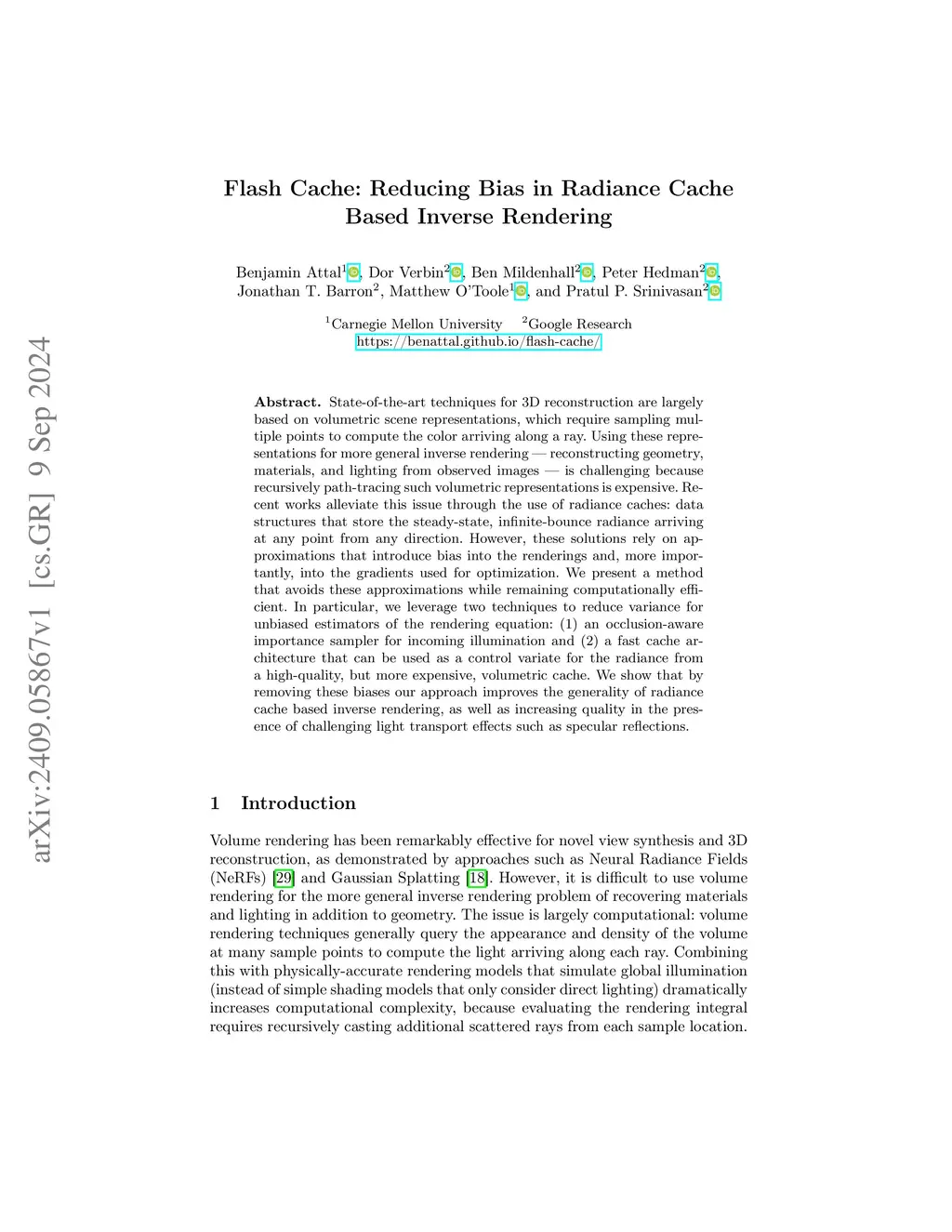 Flash Cache: Reducing Bias in Radiance Cache Based Inverse Rendering