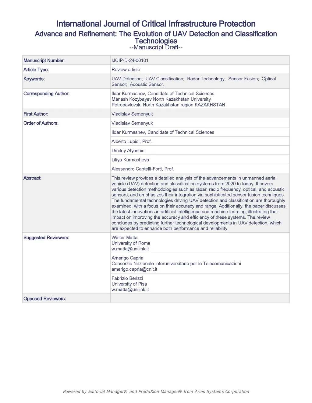 This review provides a detailed analysis of the advancements in unmanned aerial vehicle (UAV) detection and classification systems from 2020 to today. It covers various detection methodologies such as radar, radio frequency, optical, and acoustic sensors, and emphasizes their integration via sophisticated sensor fusion techniques. The fundamental technologies driving UAV detection and classification are thoroughly examined, with a focus on their accuracy and range. Additionally, the paper discusses the latest innovations in artificial intelligence and machine learning, illustrating their impact on improving the accuracy and efficiency of these systems. The review concludes by predicting further technological developments in UAV detection, which are expected to enhance both performance and reliability.