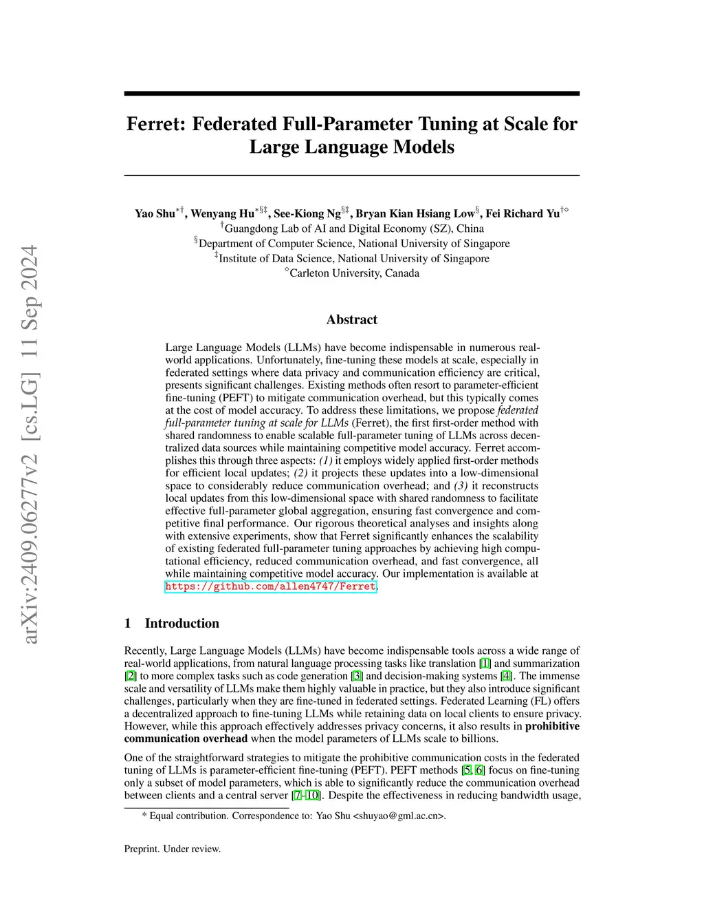 Ferret: Federated Full-Parameter Tuning at Scale for Large Language Models
