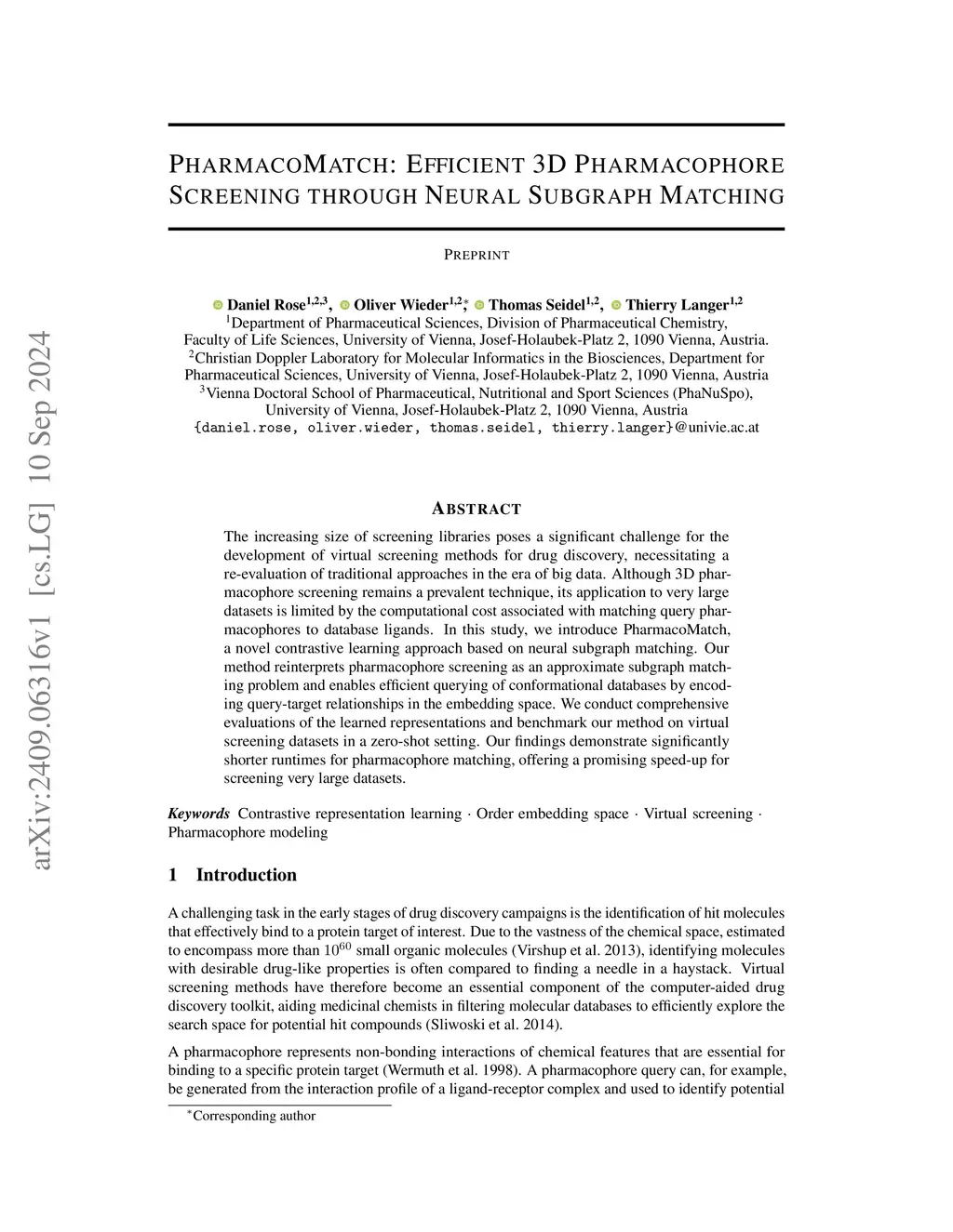 The increasing size of screening libraries poses a significant challenge for the development of virtual screening methods for drug discovery, necessitating a re-evaluation of traditional approaches in the era of big data. Although 3D pharmacophore screening remains a prevalent technique, its application to very large datasets is limited by the computational cost associated with matching query pharmacophores to database molecules. In this study, we introduce PharmacoMatch, a novel contrastive learning approach based on neural subgraph matching. Our method reinterprets pharmacophore screening as an approximate subgraph matching problem and enables efficient querying of conformational databases by encoding query-target relationships in the embedding space. We conduct comprehensive investigations of the learned representations and evaluate PharmacoMatch as pre-screening tool in a zero-shot setting. We demonstrate significantly shorter runtimes and comparable performance metrics to existing solutions, providing a promising speed-up for screening very large datasets.
