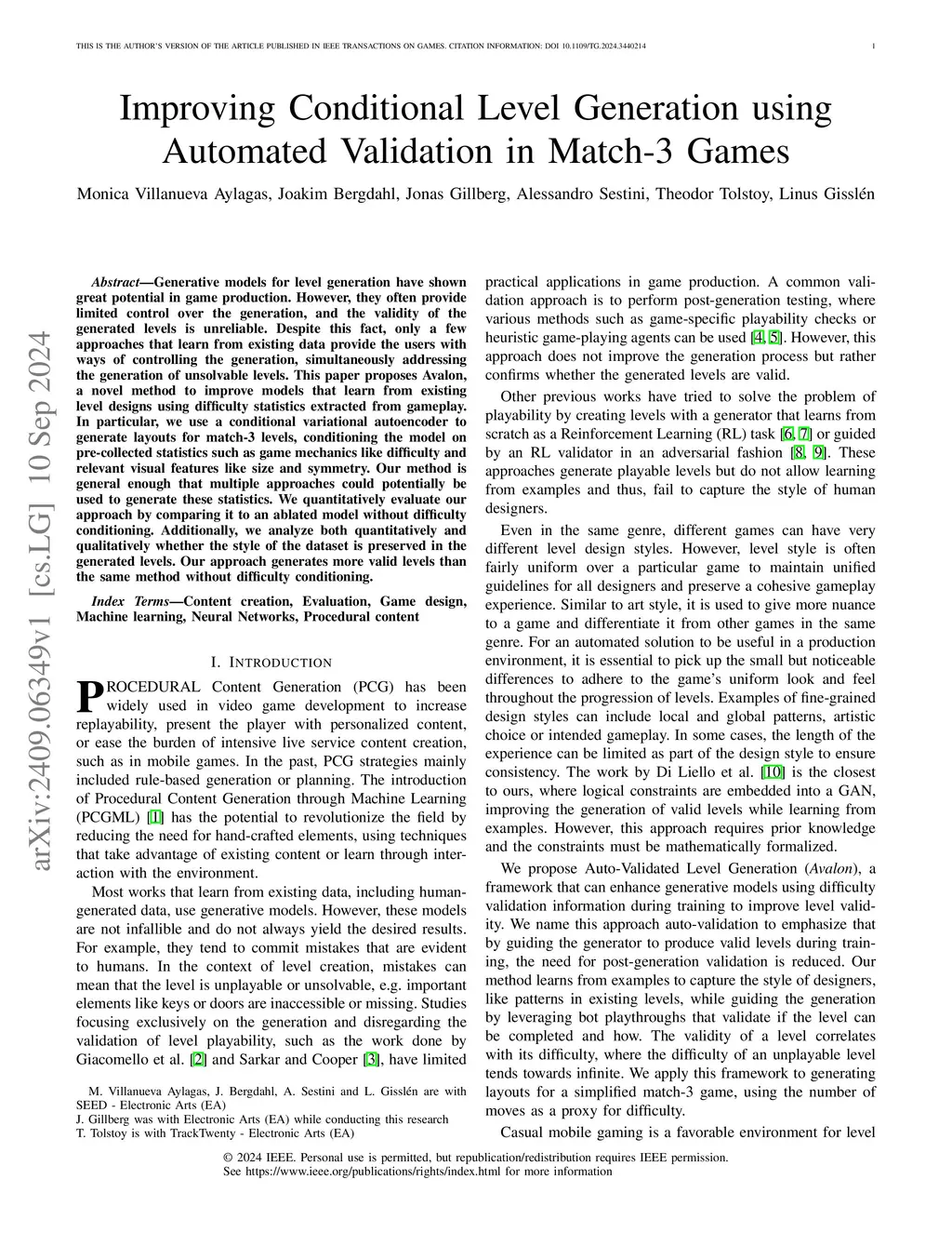 Generative models for level generation have shown great potential in game production. However, they often provide limited control over the generation, and the validity of the generated levels is unreliable. Despite this fact, only a few approaches that learn from existing data provide the users with ways of controlling the generation, simultaneously addressing the generation of unsolvable levels. %One of the main challenges it faces is that levels generated through automation may not be solvable thus requiring validation. are not always engaging, challenging, or even solvable. This paper proposes Avalon, a novel method to improve models that learn from existing level designs using difficulty statistics extracted from gameplay. In particular, we use a conditional variational autoencoder to generate layouts for match-3 levels, conditioning the model on pre-collected statistics such as game mechanics like difficulty and relevant visual features like size and symmetry. Our method is general enough that multiple approaches could potentially be used to generate these statistics. We quantitatively evaluate our approach by comparing it to an ablated model without difficulty conditioning. Additionally, we analyze both quantitatively and qualitatively whether the style of the dataset is preserved in the generated levels. Our approach generates more valid levels than the same method without difficulty conditioning.