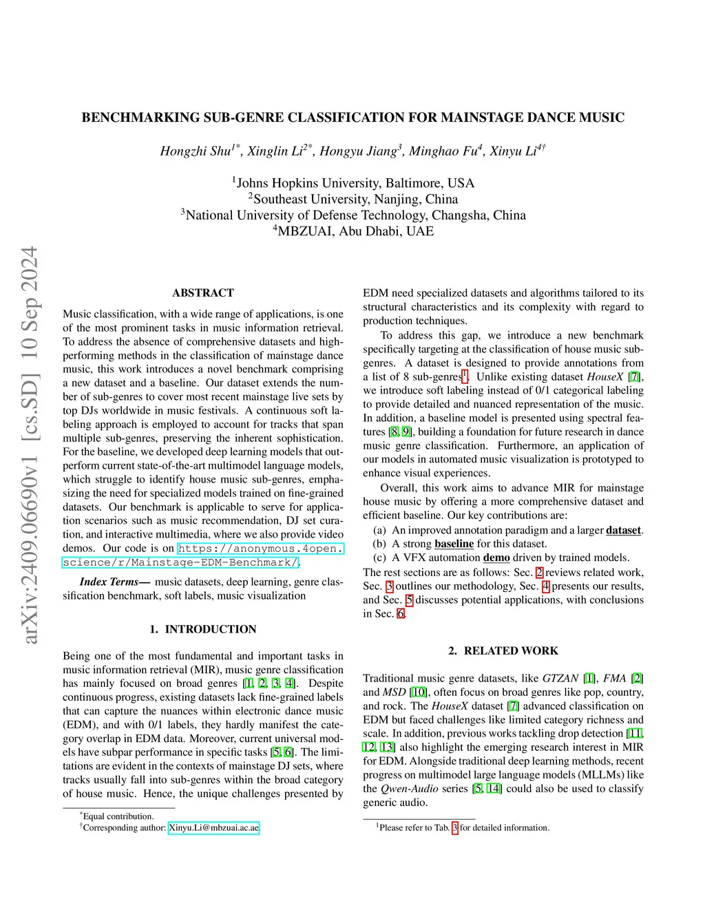 Music classification, a cornerstone of music information retrieval, supports a wide array of applications. To address the lack of comprehensive datasets and effective methods for sub-genre classification in mainstage dance music, we introduce a novel benchmark featuring a new dataset and baseline. Our dataset expands the scope of sub-genres to reflect the diversity of recent mainstage live sets performed by leading DJs at global music festivals, capturing the vibrant and rapidly evolving electronic dance music (EDM) scene that engages millions of fans worldwide. We employ a continuous soft labeling approach to accommodate tracks blending multiple sub-genres, preserving their inherent complexity. Experiments demonstrate that even state-of-the-art multimodal large language models (MLLMs) struggle with this task, while our specialized baseline models achieve high accuracy. This benchmark supports applications such as music recommendation, DJ set curation, and interactive multimedia systems, with video demos provided. Our code and data are all open-sourced atthis https URL.