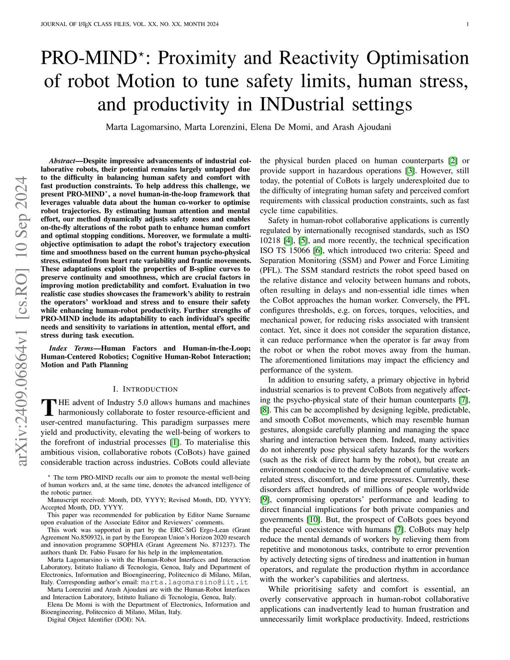 PRO-MIND: Proximity and Reactivity Optimisation of robot Motion to tune